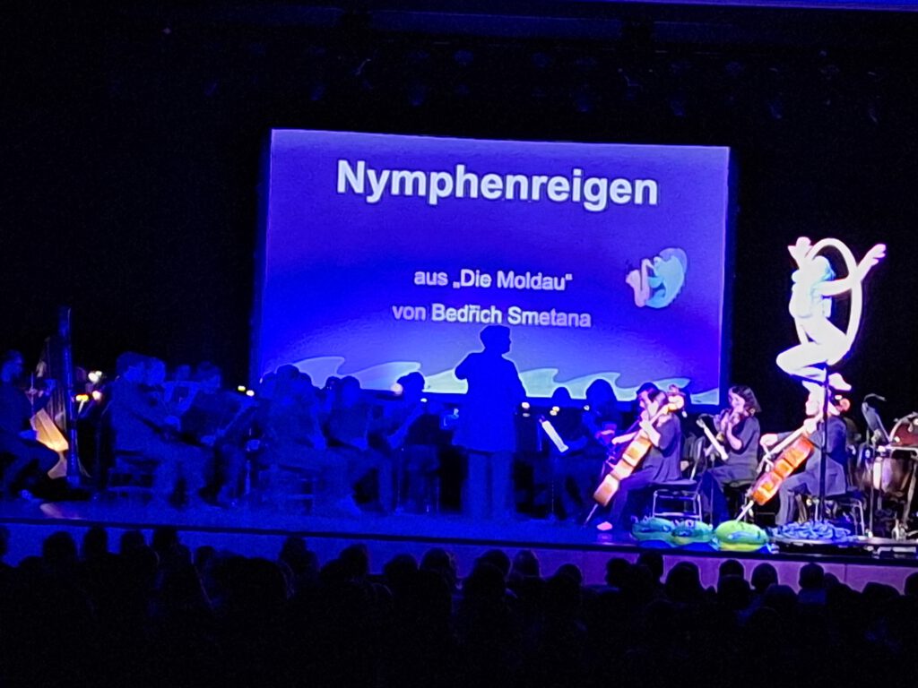 Im Stadtsaal spielten die Musiker der Philharmonie Salzburg im Rahmen der Kinderfestspiele „Die Moldau“. Die Klassen 2a und 4a besuchten das Konzert und erlebten, wie das Orchester unter der Leitung von Dirigentin Elisabeth Fuchs dem jungen Publikum die klassische Musik kindgerecht näherbrachte. Man durfte teilweise auch selbst aktiv mitmachen, klatschen, singen, sich bewegen und Fragen beantworten. Neben den Musikern war auch eine Tänzerin auf der Bühne zu sehen, die tolle Akrobatik am Reifen zeigte. Mit Hilfe eines QR-Codes konnte jeder Besucher das Konzert zu Hause noch einmal anhören.