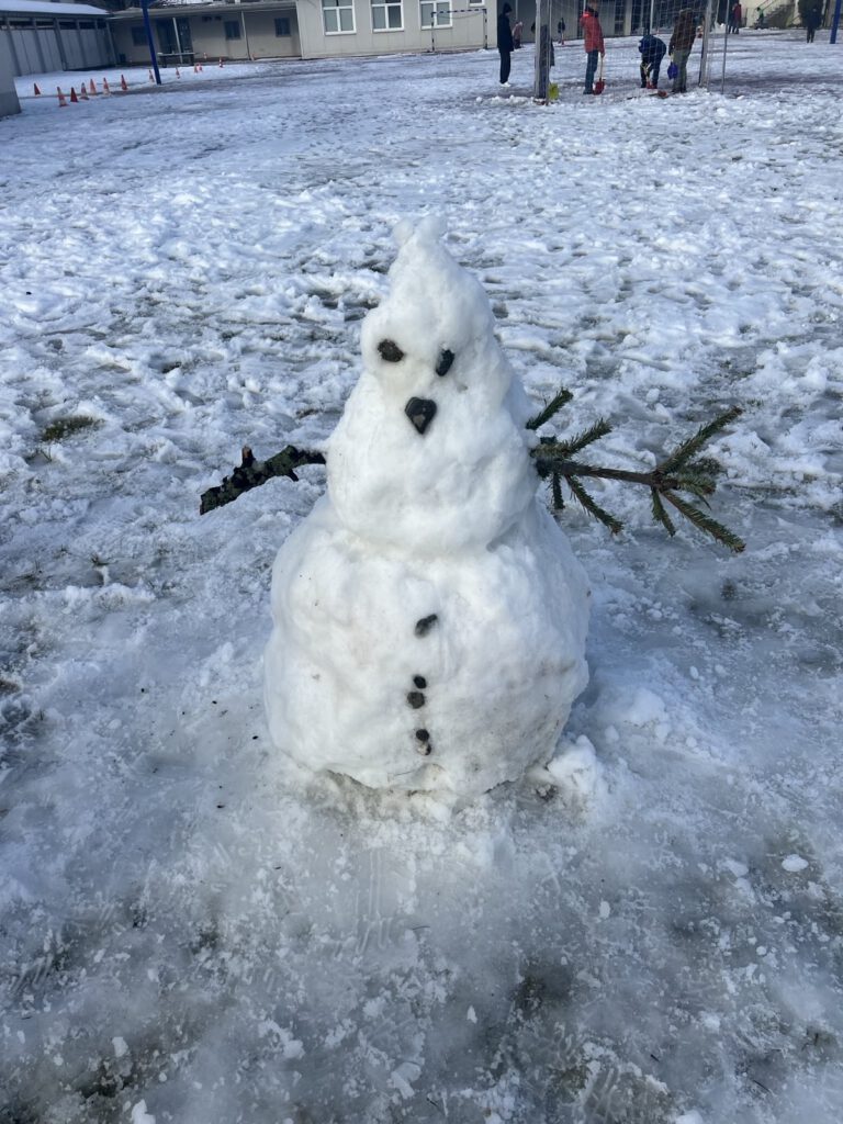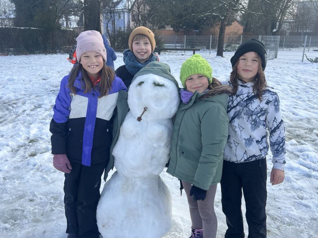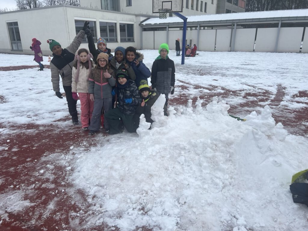 Endlich hat es geschneit und zwar nicht nur ein bisschen, sondern richtig viel! So viel, dass wir in unseren Pausen tolle Gebilde und Figuren aus Schnee bauen konnten. Wir freuen uns sehr darüber, euch heute unsere tollsten Kunstwerke zu zeigen.