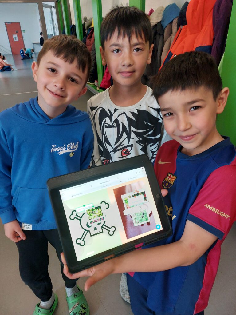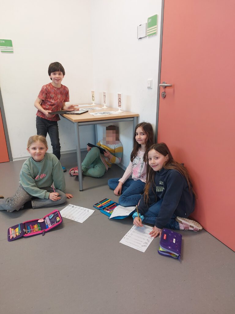 Mit spannenden Lernapps konnten die Schülerinnen und Schüler ihr Wissen rund um die Hecke spielerisch überprüfen. Die Apps boten kleine Quizfragen und Rätsel, die den Kindern sichtlich Spaß machten und ihnen halfen, das Gelernte noch besser zu behalten. Der Arbeitsplatz war frei wählbar. Während einige Kinder im Klassenzimmer arbeiteten, fanden andere durchaus ungewöhnliche Orte.